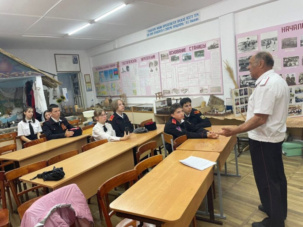 Сегодня учащиеся 8 Б класса во главе с казаком-наставником Машкарой В.И. посетили краеведческий музей, который располагается в школе №15. Здесь юным посетителям казак-наставник Медовник В.Н. рассказал в том числе и о самых трагических страницах истории станицы Гостагаевской, связанных с немецко-фашистской оккупацией. Именно эта солнечная станица под Анапой стала одним из первых мест, где фашисты впервые использовали «машины смерти» — душегубки, в которых до смерти мучили людей. В музее сохранены воспоминания очевидцев и документы.